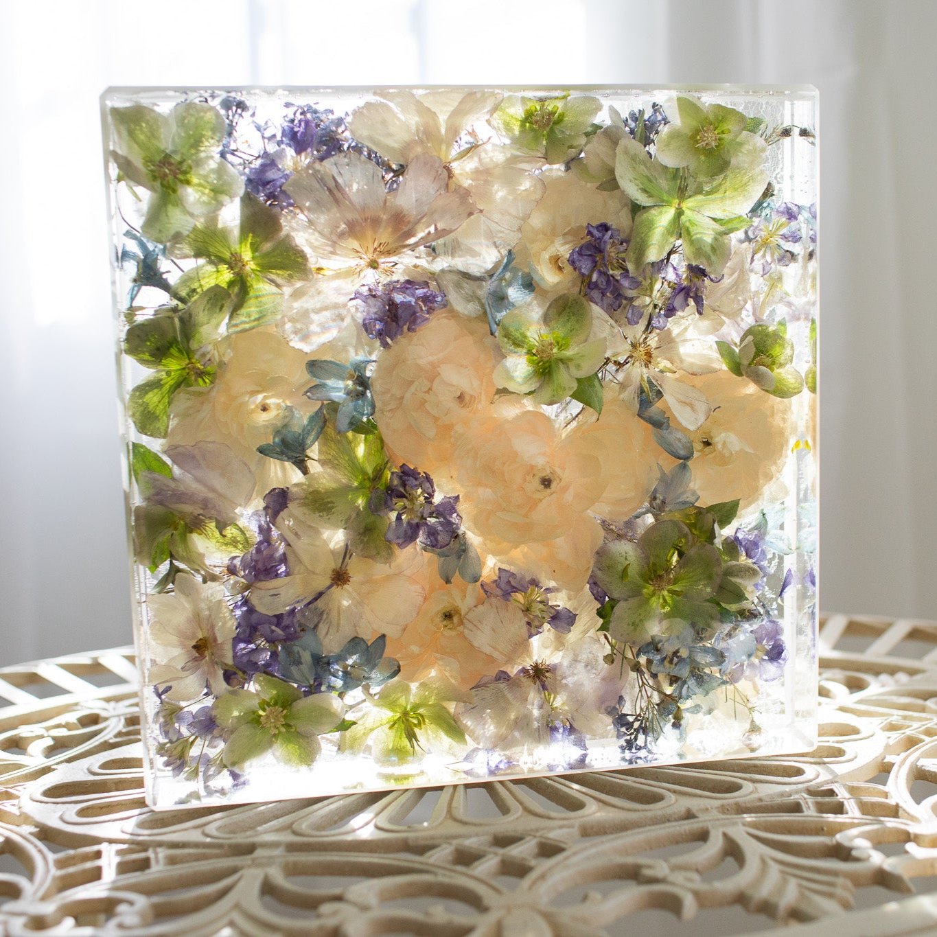 This piece is a great statement piece for basic display or can also be turned into an end table (legs will be added on separately). It can hold 8-10 average sized flowers. A great size for a 5x7 picture, invitation or other memorabilia.